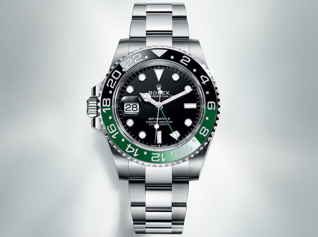 Cette montre de voyageur se porte sur un bracelet Oyster fermé par une boucle déployante. Elle se distingue aussi par sa lunette graduée 24 heures, bidirectionnelle, bicolore en céramique verte et noire. Au côté de la “Pepsi“ et de la “Batman“, cette inédite GMT-Master II possède toutes les qualités pour se faire un surnom !