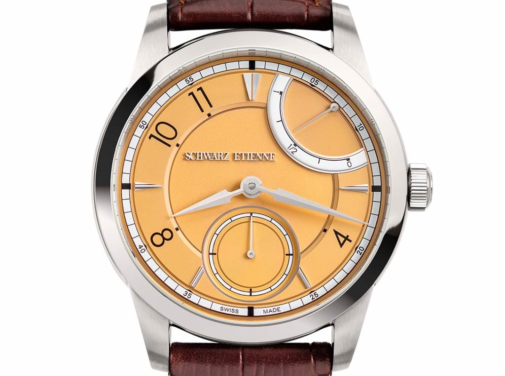 Amid the onslaught of chic & sporty pieces, decisively-elegant alternatives stand out with equally attractive arguments. Schwarz Etienne‘s 1902 Réserve de Marche model is one of these. It boasts one-of-a-kind style with its outstanding time-data scenography. Special emphasis and textures on its dial place the accent on the different displays. As such, the small seconds set at 6 o’clock and the semi-circular power reserve indicator at 2 are crystal clear. Finishing touches also mark out the hour chapter and its four large numerals, as well as the railway-type minute tracker running around the edge.
