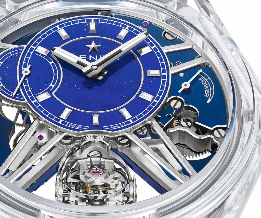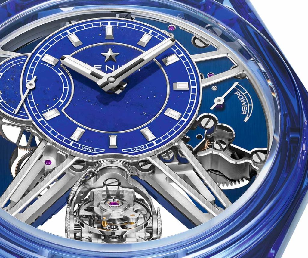 The tourbillon, imagined for pocket watches that generally remain in a static vertical position, doesn’t deliver the same performances on wristwatches that are forever in motion across several axes. To offset this limitation and guarantee optimal stability for the regulating device, Zenith developed a gyroscopic Gravity Control module that ensures the mechanism invented by Breguet always remains horizontal and stable. To do this, the manufacture’s watchmakers drew inspiration from marine chronometers by miniaturizing the system that limited the negative effects of a boat’s rolling and pitching. This ingenious device, introduced in 2008 and present in the new Defy Zero G Sapphire watches, has constantly evolved.