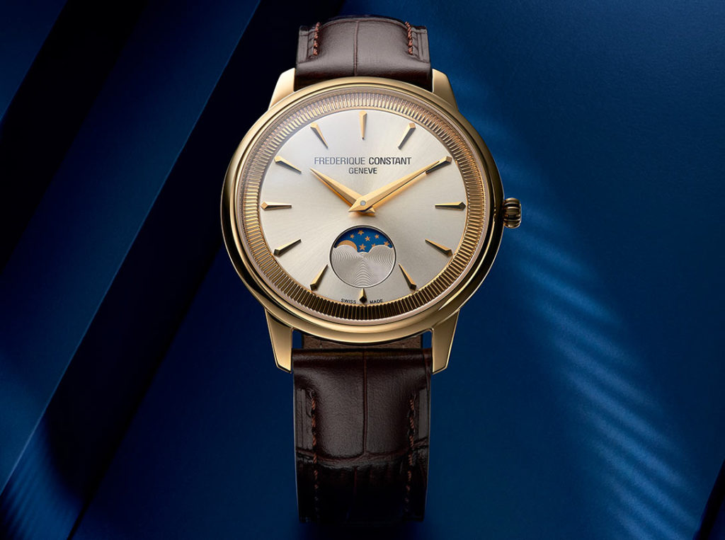 A l’image d’un couple d’aiguilles qui danse en rond en survolant le visage d’une montre, les tendances fonctionnent souvent en cycles. Toutefois, si ces modes vont et viennent au fil des époques, certaines restent éternellement dans la contemporanéité, comme les dress watches, ces pièces dites habillées, en vogue dans les années 1970, et souvent portées lors d’événements mondains. Leur style intemporel s’inscrit parmi les collections de Frederique Constant, notamment la série Classics Moneta Moonphase dévoilée l’année dernière et que la marque basée à Genève étoffe de deux nouvelles références en ce début d’automne.