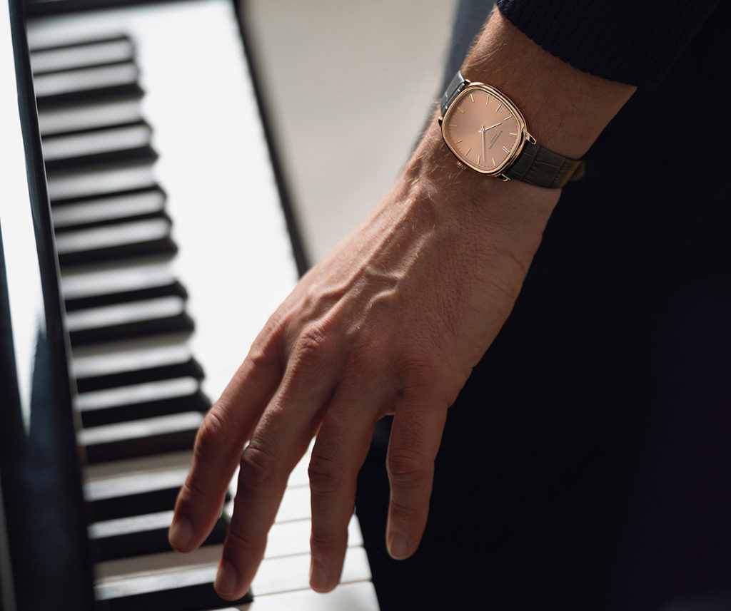 « Toccata Heritage incarne un véritable voyage à travers le temps, un hommage au passé, une célébration du présent… “. C’est par ces mots qu’Eli Berheim, CEO de Raymond Weil a présenté l’une des plus agréables surprises horlogères de l’année. Dévoilée en toute discrétion durant Watches & Wonders Geneva, la Toccata Heritage ne laisse pas indifférent. La forme de son boîtier en acier contribue fortement à ce pouvoir d’attraction. Son ovale, 33 x 38 mm, et la finesse de celui-ci, 6.95 mm, offrent à la montre une présence élégante au poignet. Sur son cadran décliné en argent vieilli ou en bleu nuit, l’affichage du temps se veut minimaliste. Les fines aiguilles des heures et des minutes pointent des index longilignes. Ni chiffres, ni date ne viennent surcharger cette mise en scène aérée. Chaque référence s’accompagne d’un bracelet en cuir à la teinte coordonnée ou sur une alternative en métal. La marque, qui célèbre l’an prochain ses 50 ans, propose également une troisième variation association aux accents cuivrés.