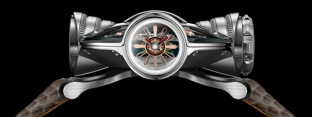 The well-known advertising slogan Think Different comes to mind when you discover MB&F‘s creations. This desire to offer disruptive watchmaking is infused in everything the brand showcases. The latest Horological Machine 11 upgrade to date is no exception to the rule. To quench this thirst to constantly roll out watches that spark great emotion instantly, this time round, Max Büsser, the brand’s founder, and his Friends gave carte blanche to one of these people, Maximilian Maertens. And, the result? The HM11 Art Deco watch is revamped and takes on finishes that conjure up the famous artistic movement born a hundred years ago. The designer also played on geometry, curves, graphic lines, as well as typography.