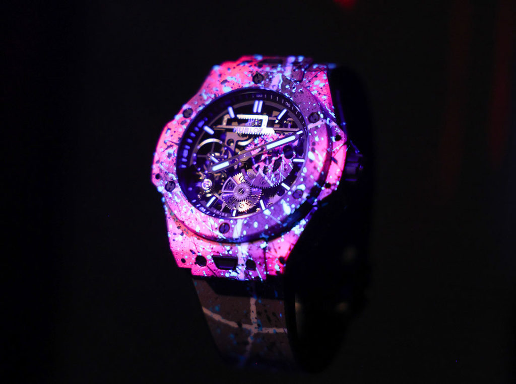 As guests arrived, festive music pulsed through the multi-level space while attendees admired a display of select archival Big Bang timepieces – an homage to two decades of groundbreaking innovation. The night’s headline moment featured a special performance by Award Winning Rapper, 50 Cent, who took the stage wearing a bespoke one-of-one Hublot timepiece, crafted for the occasion with unique colors honoring his character in the forthcoming Street Fighter film. A gold chess piece tops the dial symbolizing his Le Chemin du Roi champagne brand, with “50 cent” engraved on the caseback.