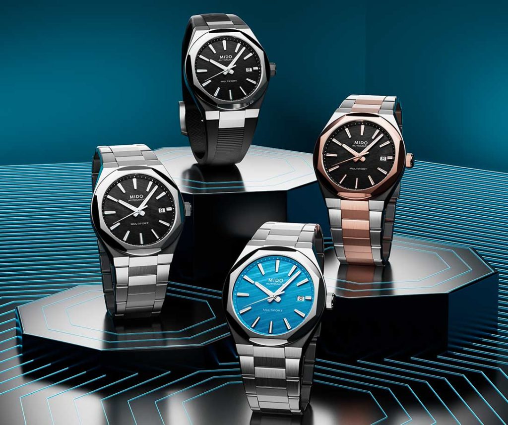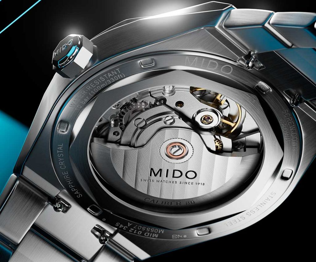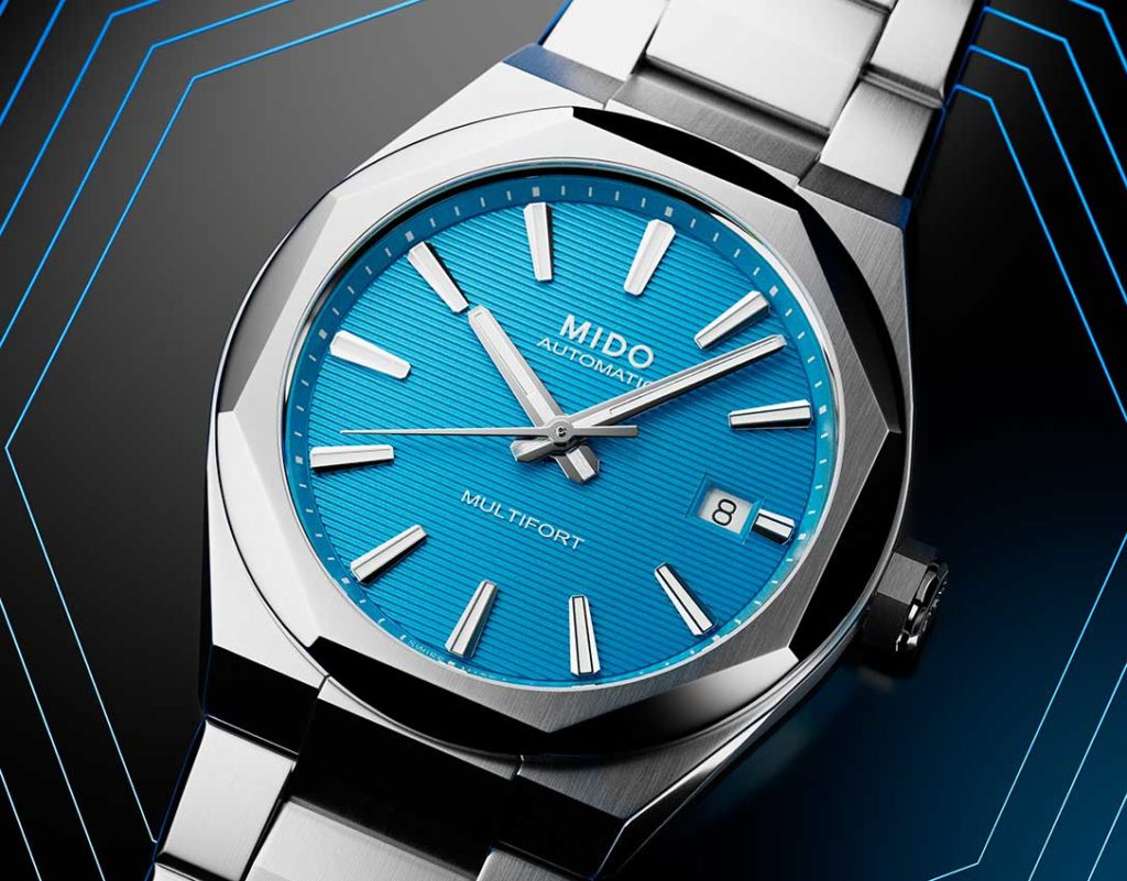 Last year, Mido unveiled a chic & sporty watch that was also very appealing when it rolled out its Multifort 8 Two Crown. Its Multifort 8 One Crown takes advantage of the same stylistic formula. In a nutshell, it boasts a 40 mm-diameter steel case, waterproof to depths of 100 meters, adorned with satin-brushed and polished finishes, along with an octagonal bezel that adds to its one-of-a-kind design. The absence of a second crown is a reminder that the flange doesn’t rotate. Nonetheless, this low-key composition still achieves its goal of ensuring visual harmony in keeping with the watch’s personality. The hour and minute hands, as well as the markers, all topped with Super-LumiNova®, create a perfect contrast with the dial, whether it’s dressed in pitch black or intense blue. The black-on-white date, nestling at 3 o’clock, fits in without breaking the balance. What’s more, time data displays are ever-so easy to read in any conditions of light.