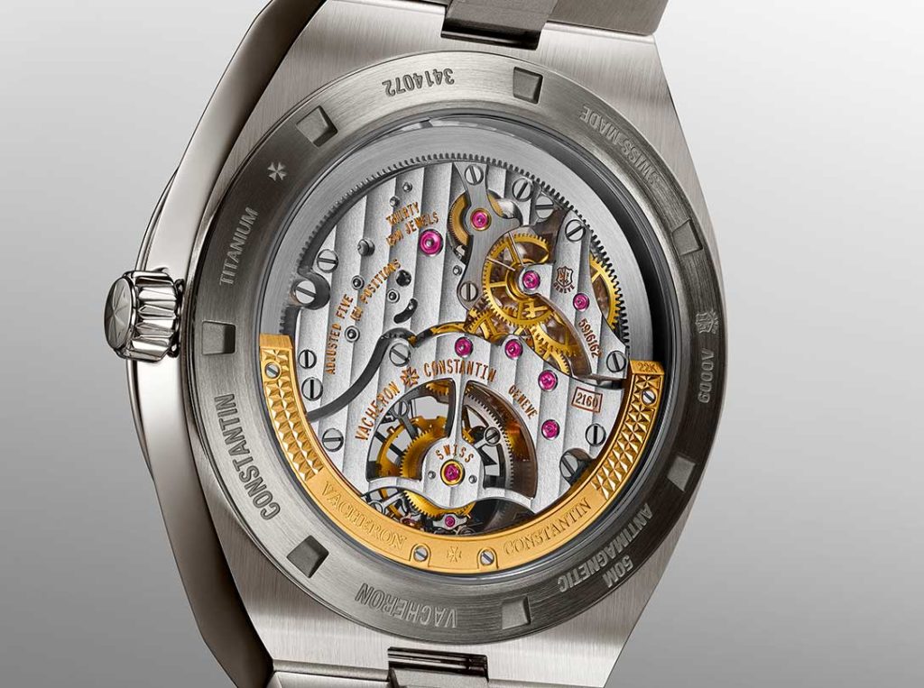 Caliber 2160, equipped with a peripheral rotor, has been driving the Overseas Tourbillon since 2019. This year, Vacheron Constantin invites to discover a one-of-a-kind color and material mix in this collection for the first time ever. The 42.5 mm-diameter, 10.39 mm-thick case takes advantage of grade 5 titanium’s characteristics. “The last four years have been marked by the emergence of pieces made entirely from titanium, with integrated bracelets, and which have stood out as popular alternatives to the steel watches in the Overseas collection. Titanium is above all prized for its intrinsic qualities: hypo-allergenic, lightweight, boasts great mechanical strength, and is highly rustproof. In a nutshell, it’s a material that’s perfectly fitting for the Overseas spirit, a watch that’s tailored to take on the uncertainties of travel”, emphasizes Christian Selmoni, the brand’s Style and Heritage Director.