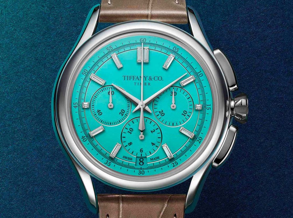Available in a limited edition of just 60 pieces to mark its “anniversary,” the Tiffany Timer watch combines the best of two worlds: Tiffany & Co.’s own jewelry expertise and the watchmaking expertise of Zenith, another LVMH brand.